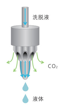 采用多通道分支方式,無(wú)需擴(kuò)張管徑即可抑制流速。不會(huì)產(chǎn)生洗脫液飛散,CO2向外逸散,液體則通過中心軸心垂直向下滴落。